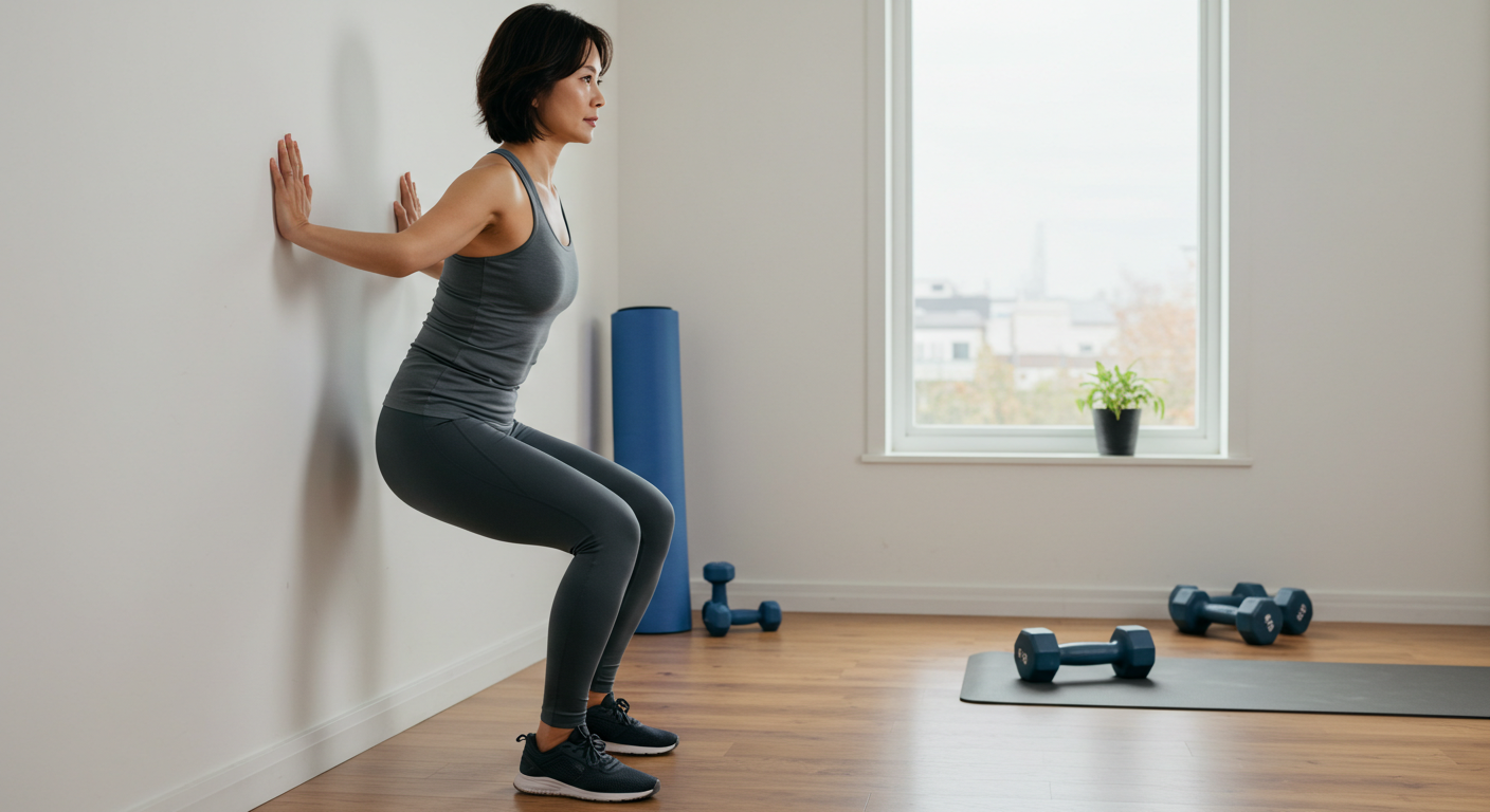 벽에 등을 붙이고 무릎을 90도 정도 굽힌 채 앉았다 일어나는 운동입니다. 복부와 허리 근육을 동시에 강화할 수 있어 ‘ 허리디스크에 좋은 운동 방법’ 중 매우 실용적입니다. 의자에 앉는 듯한 동작이 부담 없이 가능하기 때문에 4050세대에게 적합하죠.